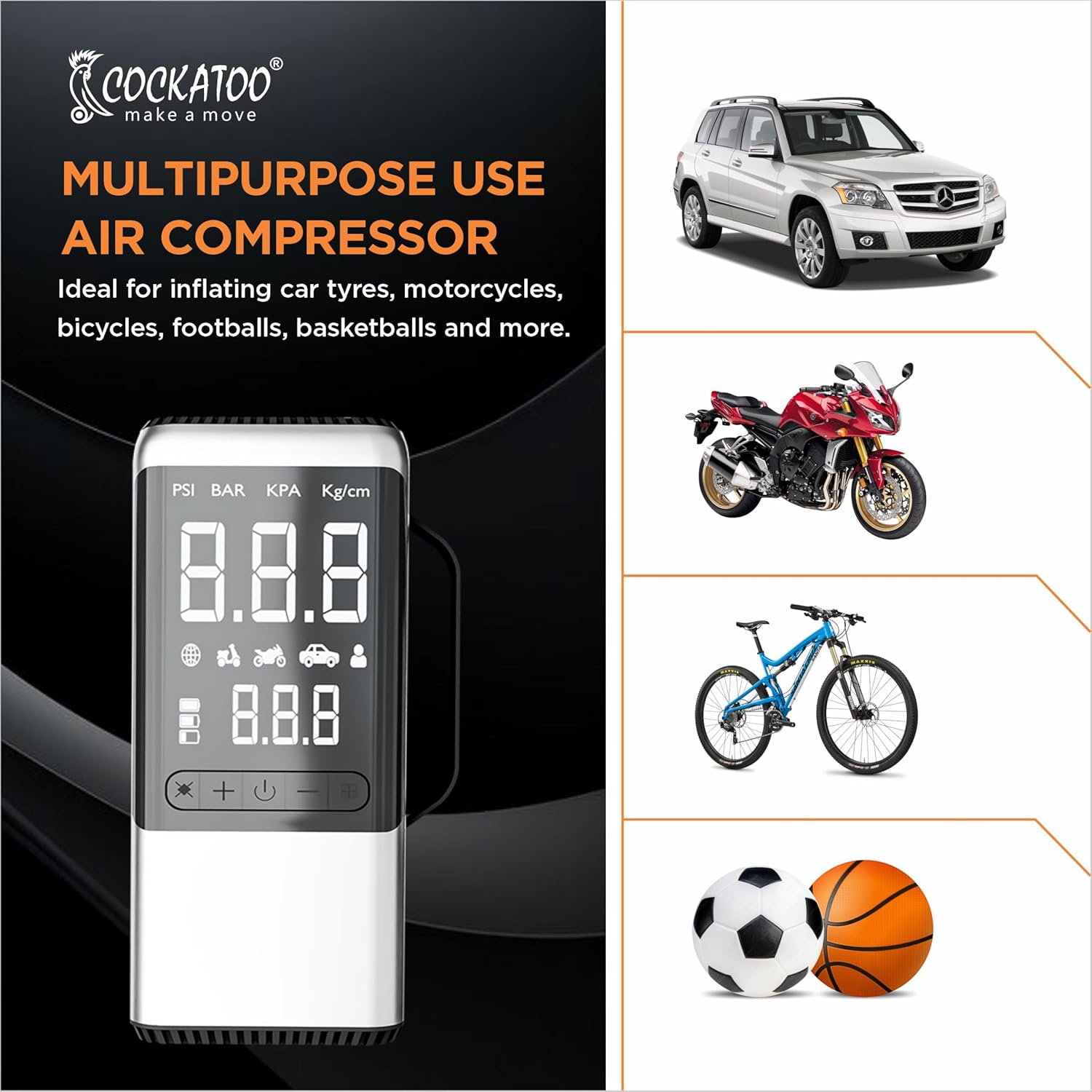 Cockatoo ATJ-9366 | Tyre inflator 4-in-1 Portable Jump Starter with Air Compressor | 8000mAh Battery
