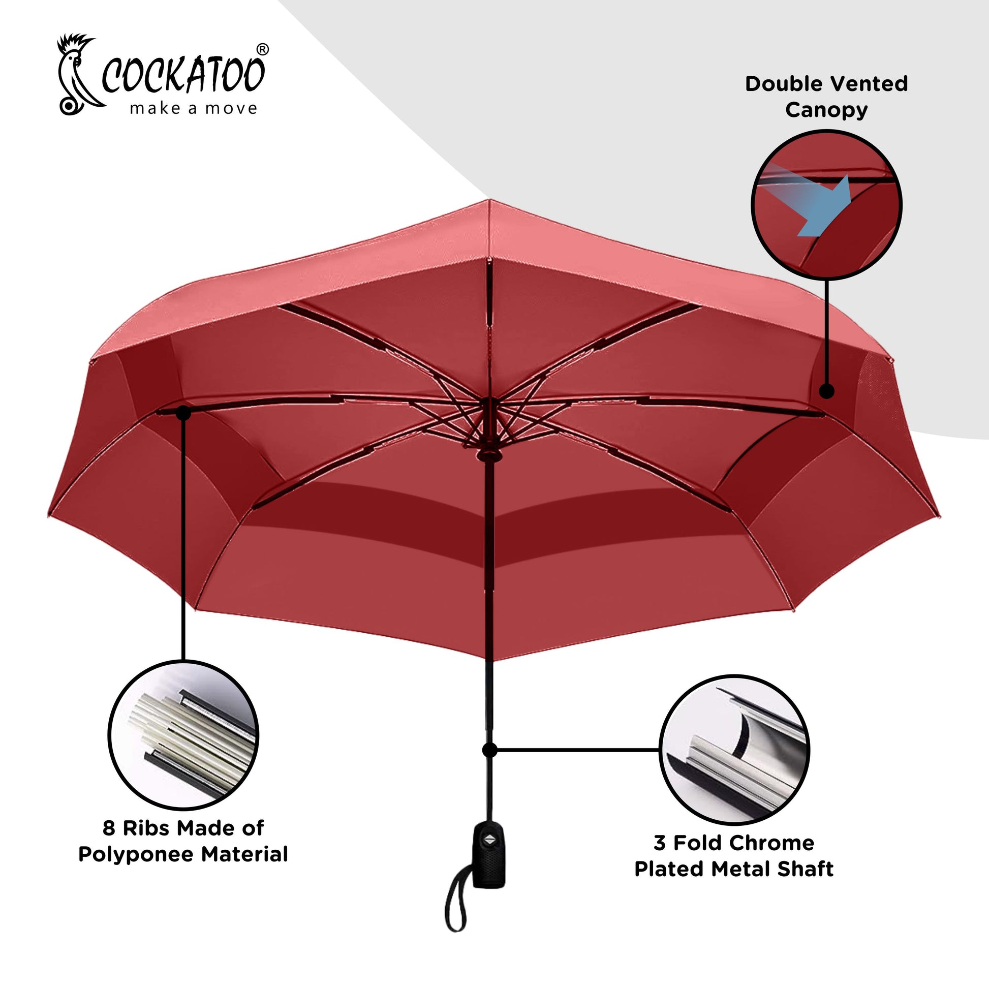 Cockatoo Rain-Guard Automatic Umbrella with 8 Ribs, Material- Polyponee , Umbrella for Women & Men, with Auto Open-Close Button
