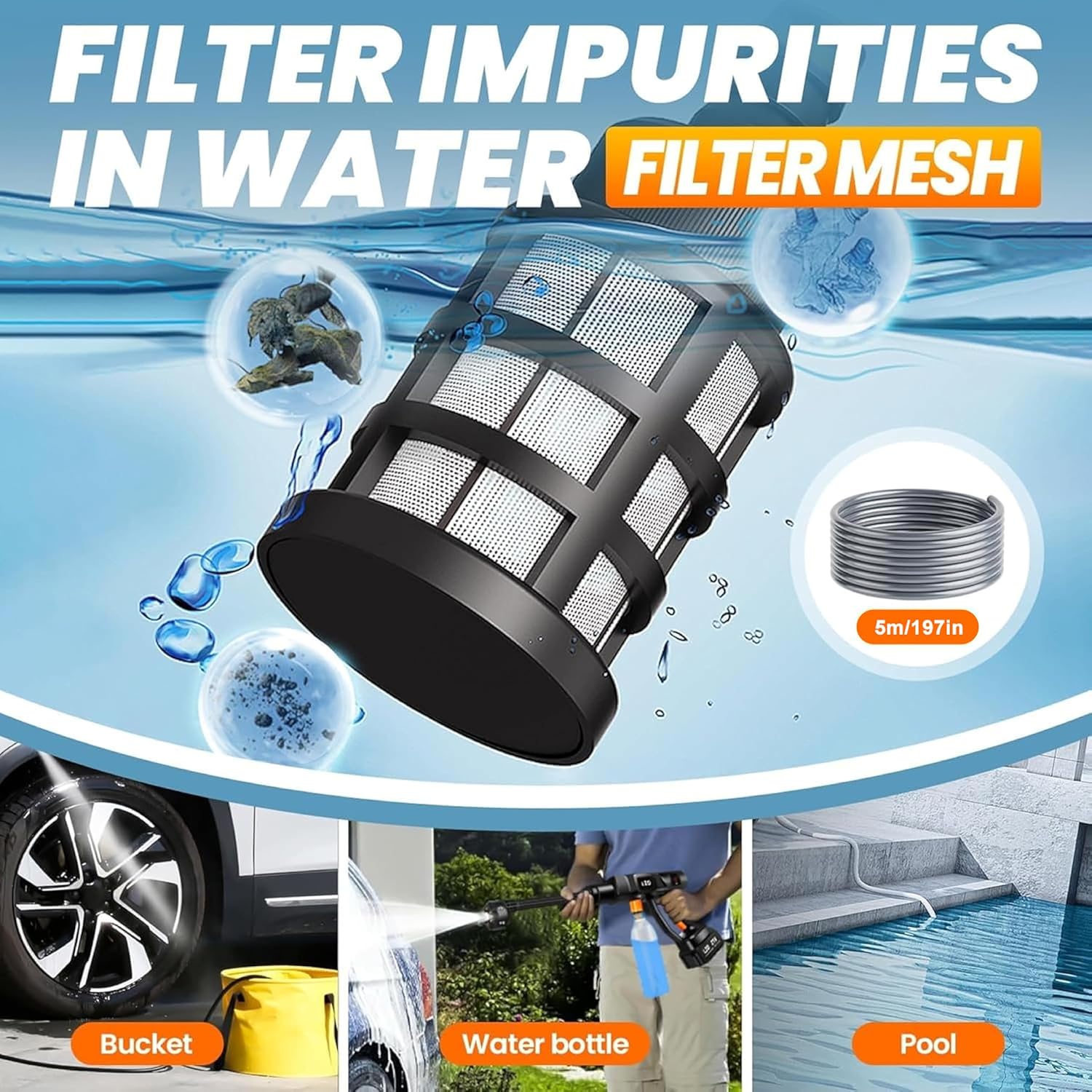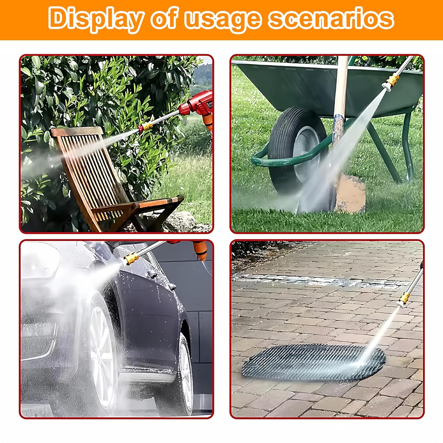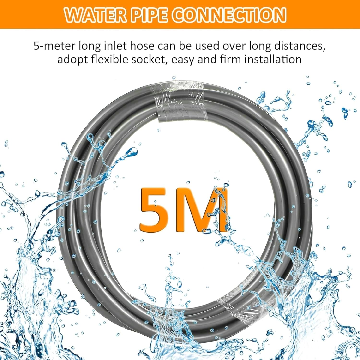 - Equipped with a 5m outlet hose, 300ml foam bottle, steel spray gun, and a 1-option water nozzle for efficient cleaning in tight or remote spaces.