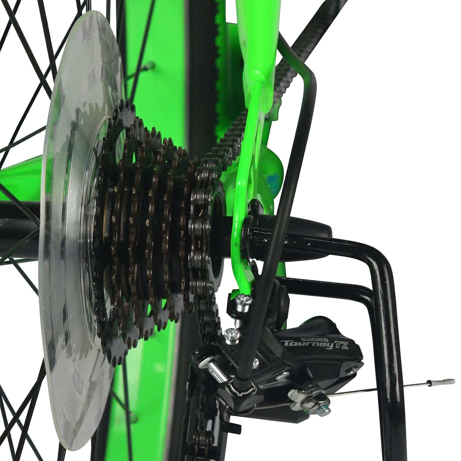 • Performance & Safety: Equipped with 21-speed Shimano derailleur gears and front & rear V-brakes for efficient control and road performance.