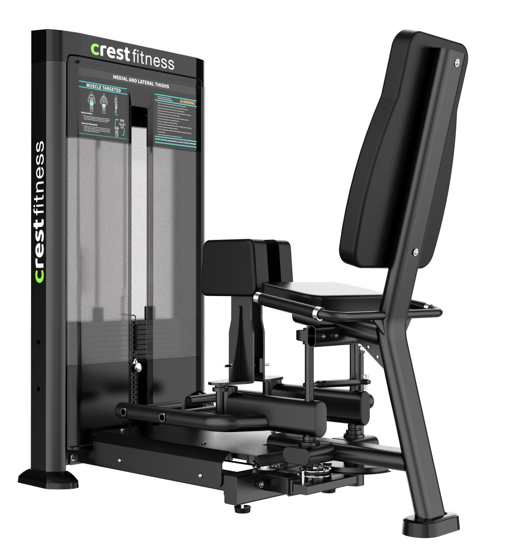 Crest Signature Series Abductor and Adductor Machine with 100 kg weight stack ensures smooth, controlled motion for effective inner and outer thigh training. Made of high-quality ABS material.