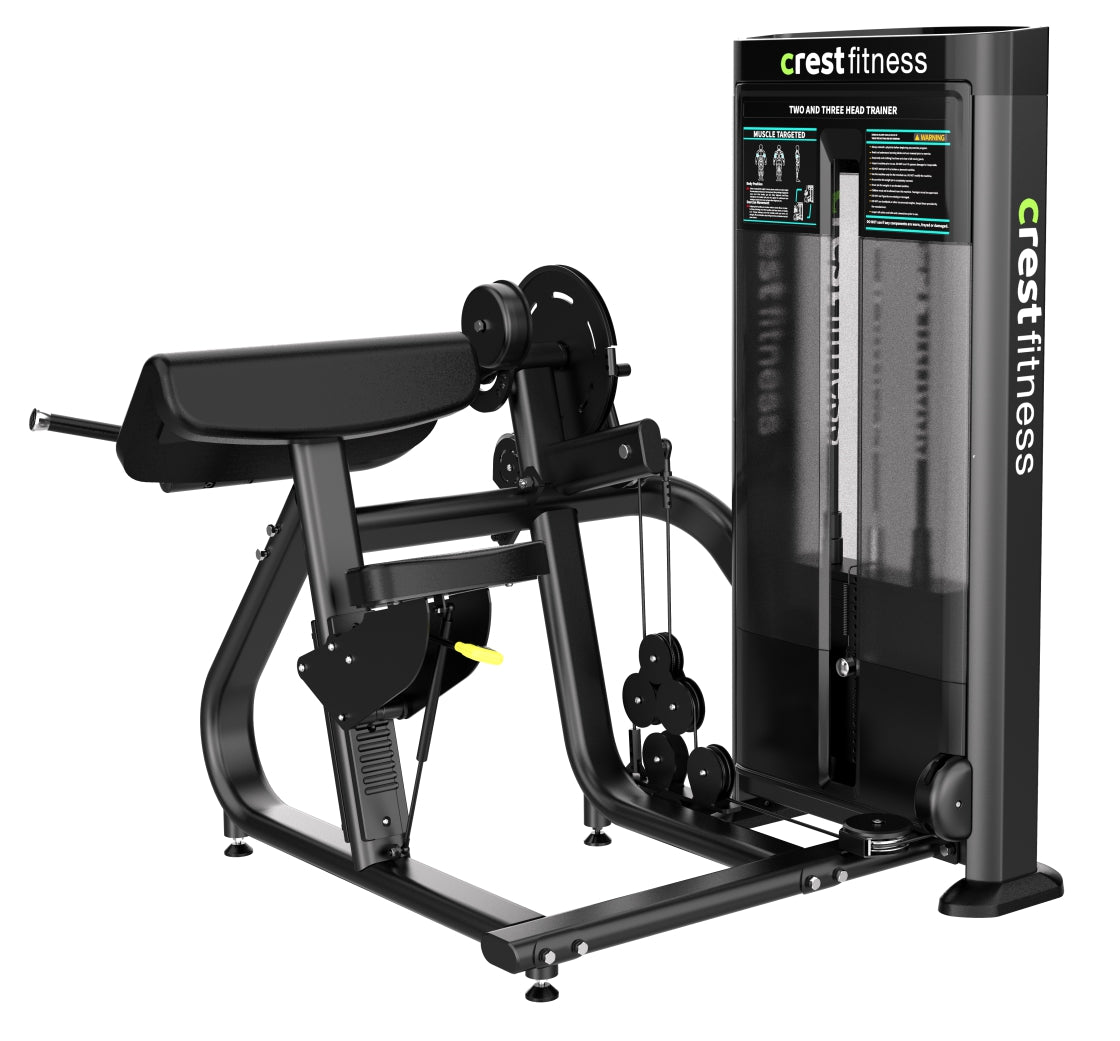 Crest Signature Bicep Curl + Tricep Extension machine provides dual-function arm training with smooth motion, durable alloy frame, adjustable weight stack, and ergonomic padding for effective bicep and tricep muscle development.