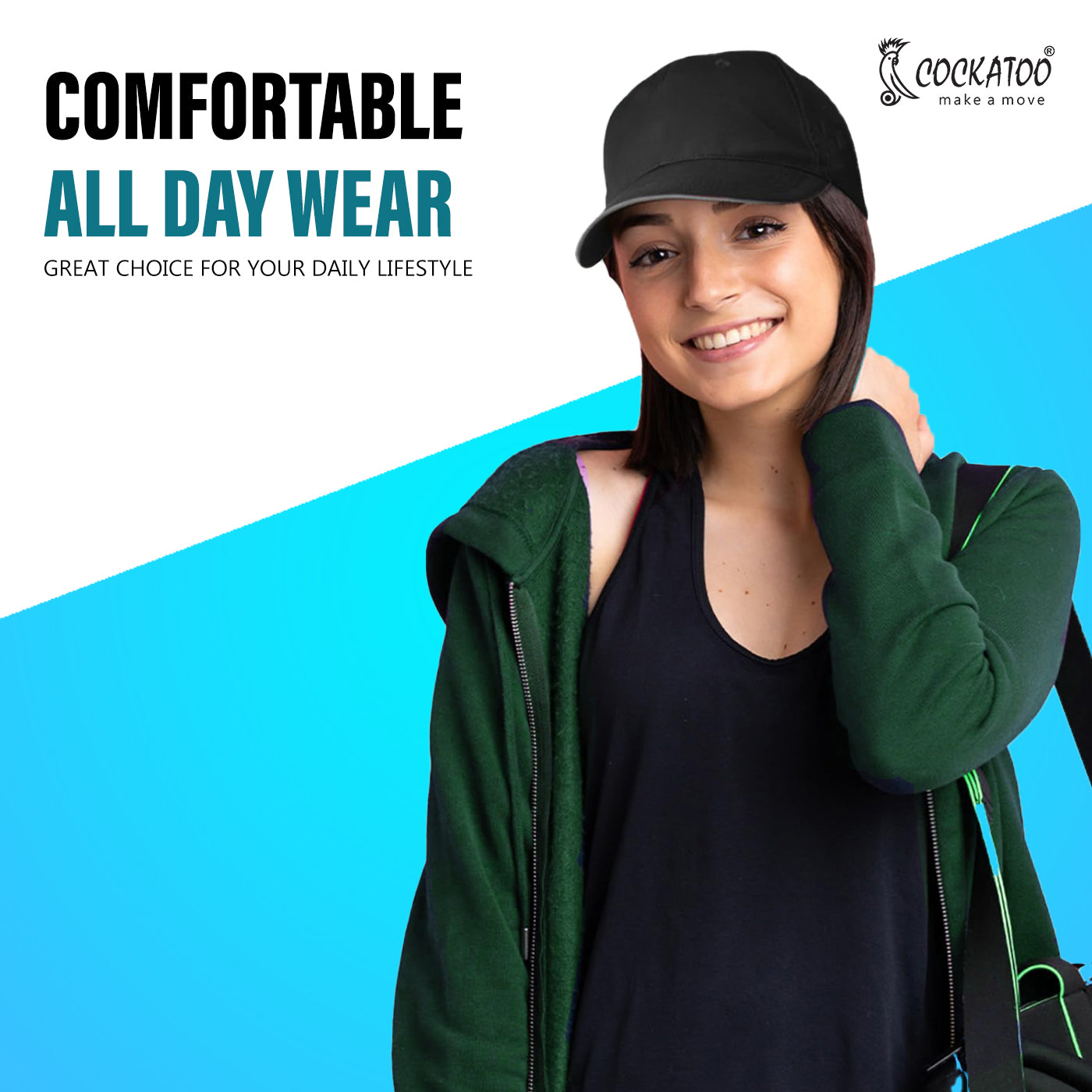 • Sporty Style: Embrace a sporty yet stylish look with the Cockatoo Sports Cap's design, blending functionality and fashion seamlessly, making it a versatile accessory for both active pursuits and casual wear.