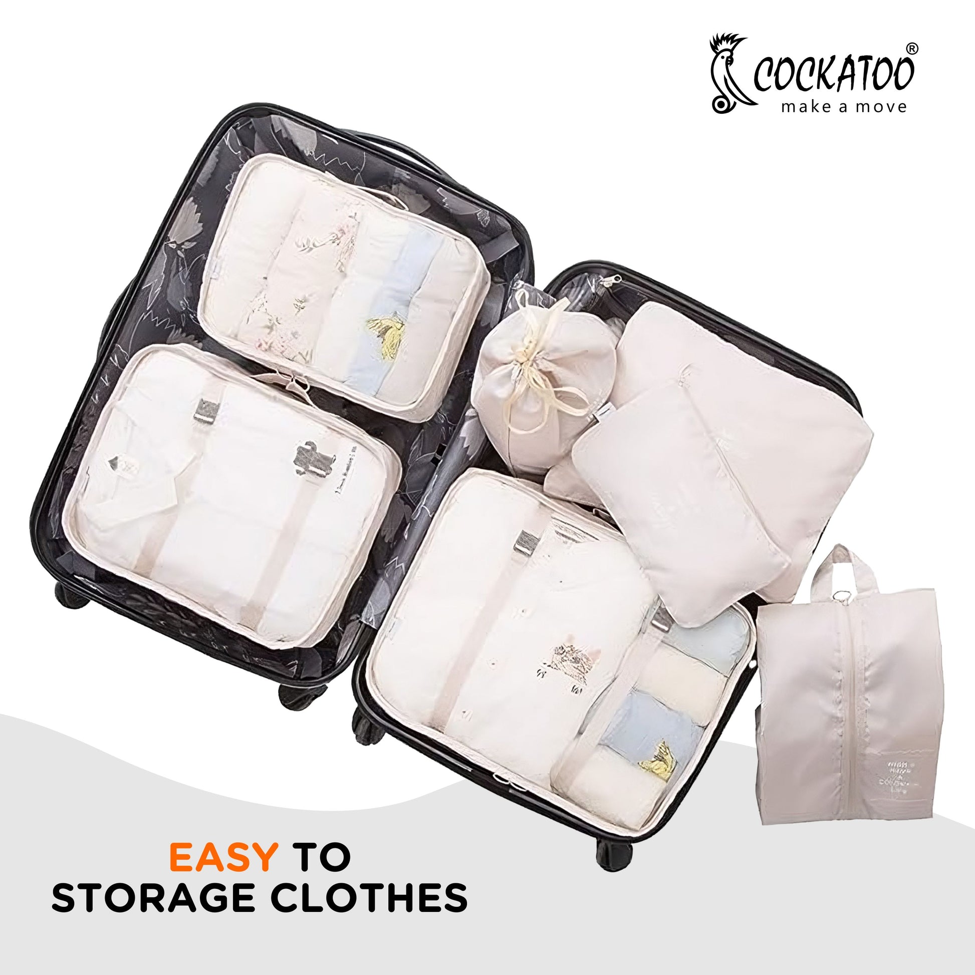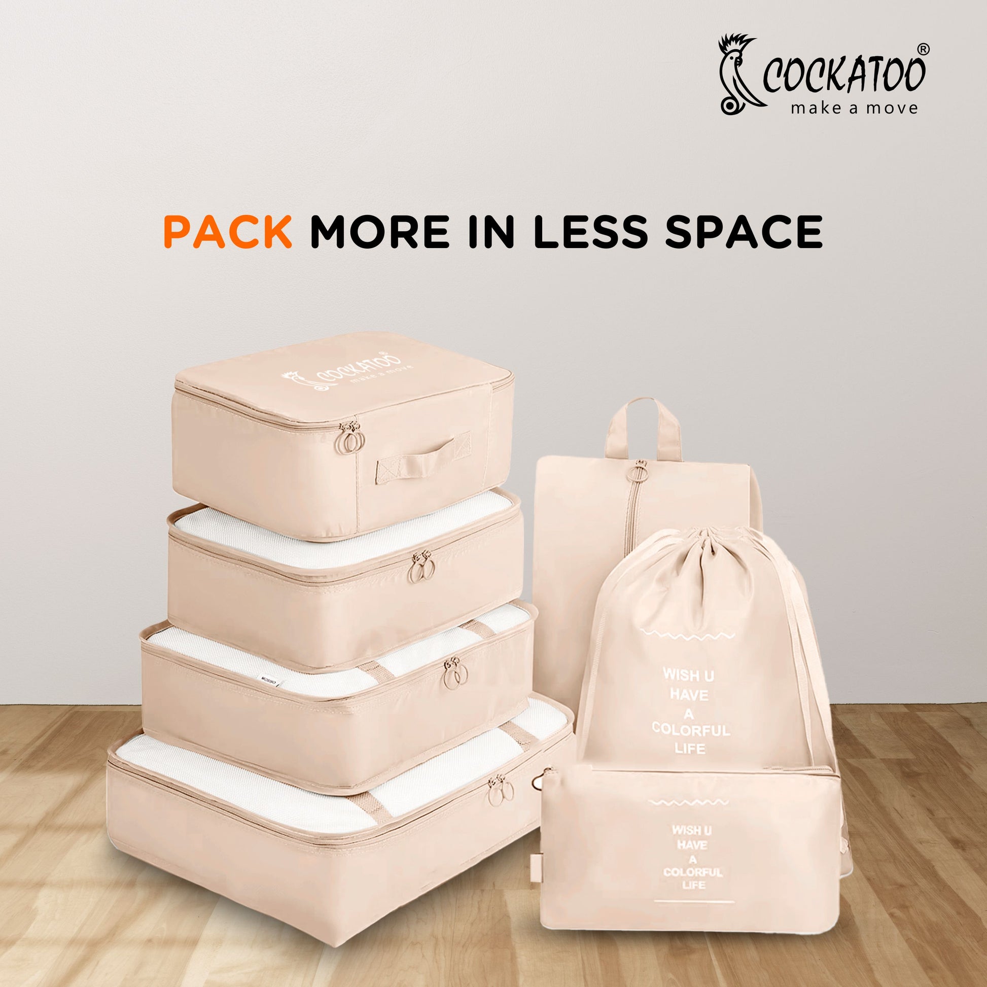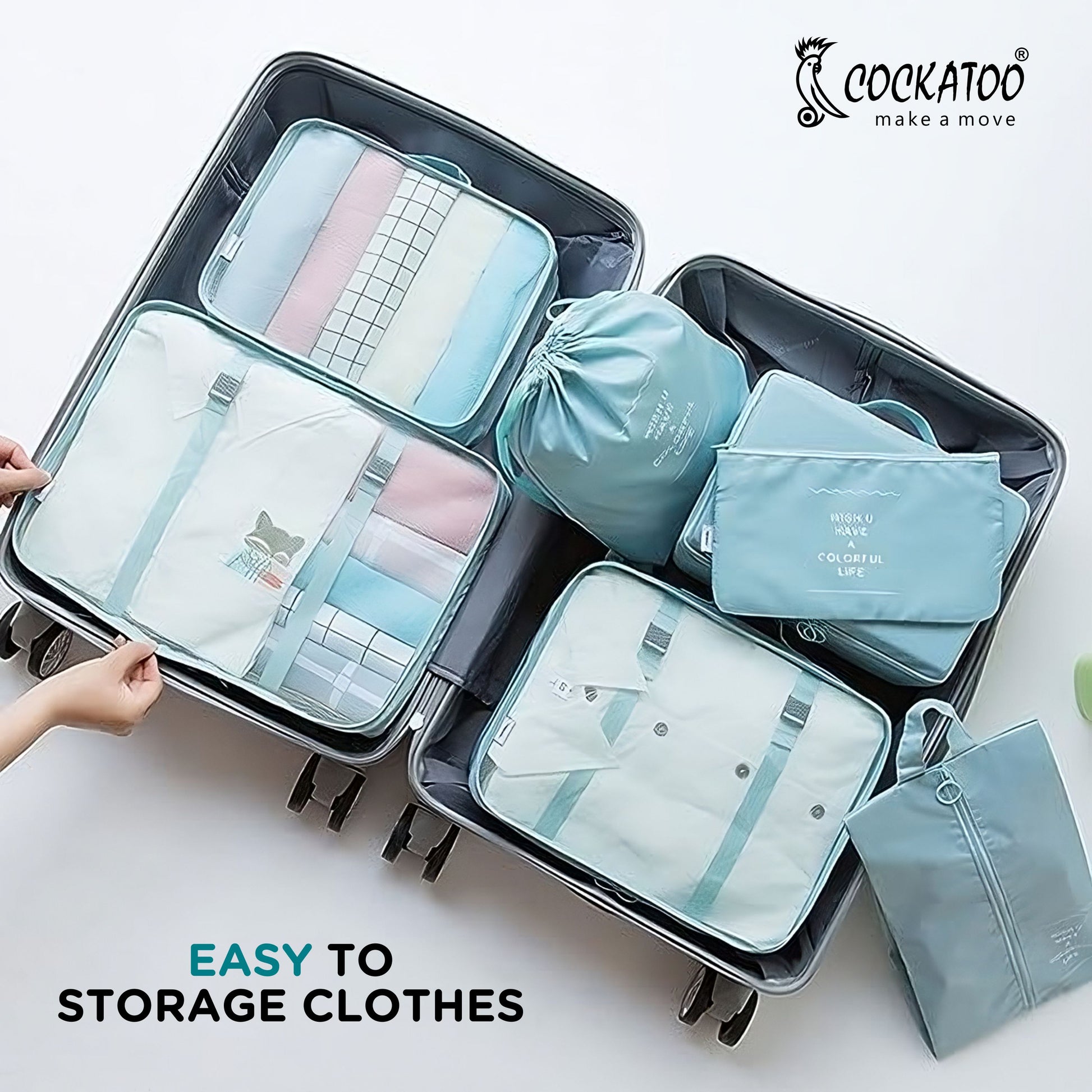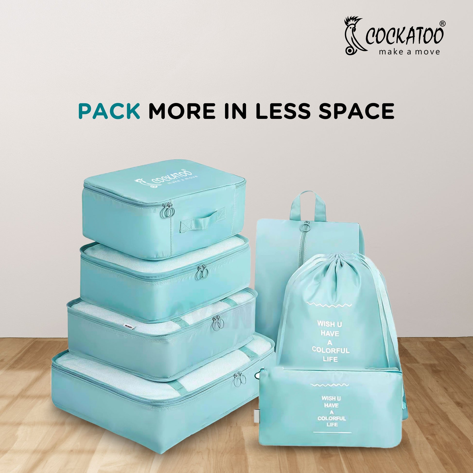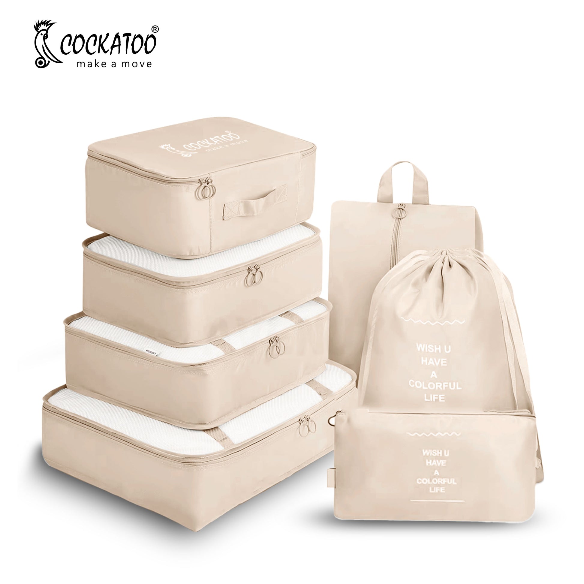 Complete Travel Storage Solution: Simplify your travel packing with the Cockatoo "Jet Set" 7 Pc Travel Storage Bag. This comprehensive set includes versatile bags to organize clothes, toiletries, accessories, and more