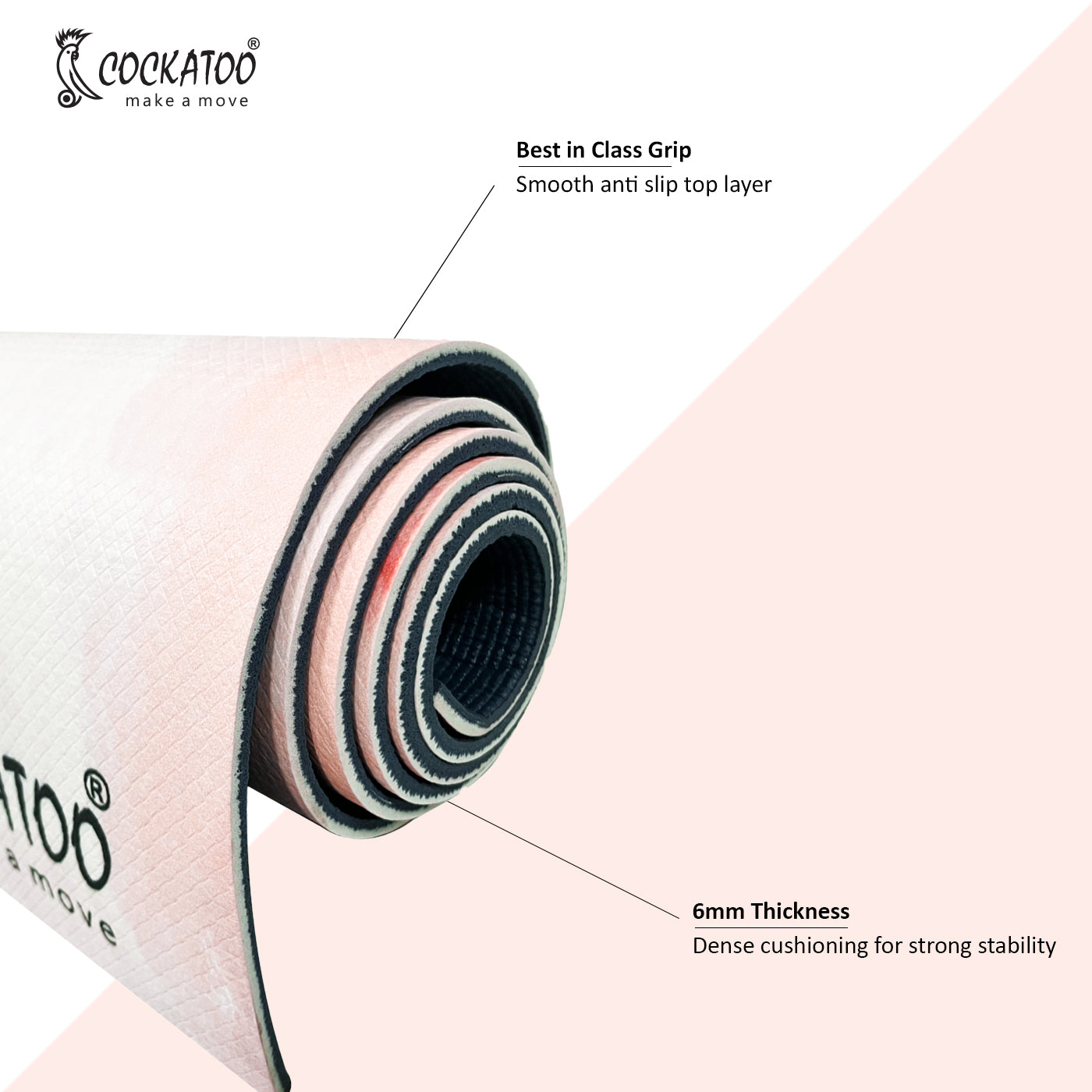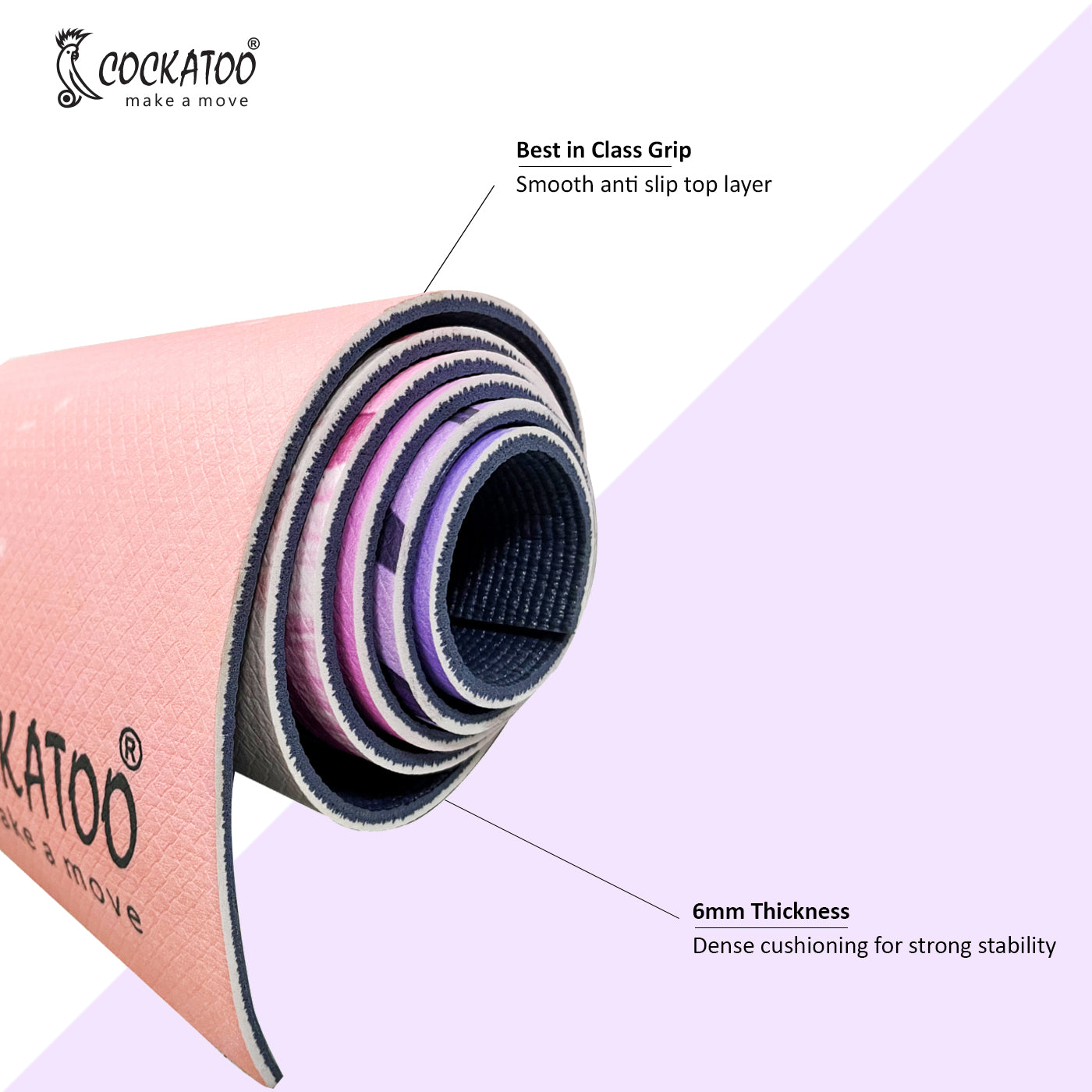 Cockatoo Printed Yoga Mat, a perfect blend of functionality and artistic expression. Crafted with your comfort and performance in mind, this 6mm thick PVC exercise mat provides a stable and cushioned surface for your workouts. Its generous dimensions of (W)61 x (L)173cm offer ample space to flow through poses, stretches, and routines, while the anti-slip surface ensures you stay grounded and focused throughout your practice.