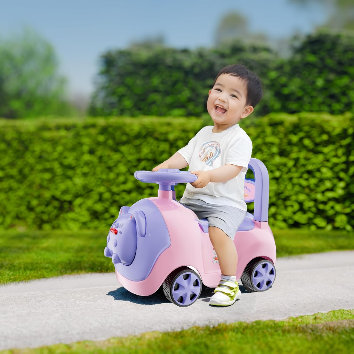 • Perfect for Indoor & Outdoor Play Lightweight and versatile, this ride-on car is ideal for both indoor playrooms and outdoor adventures.