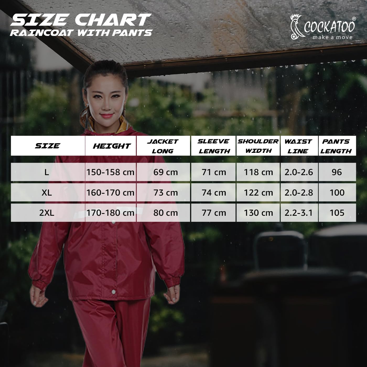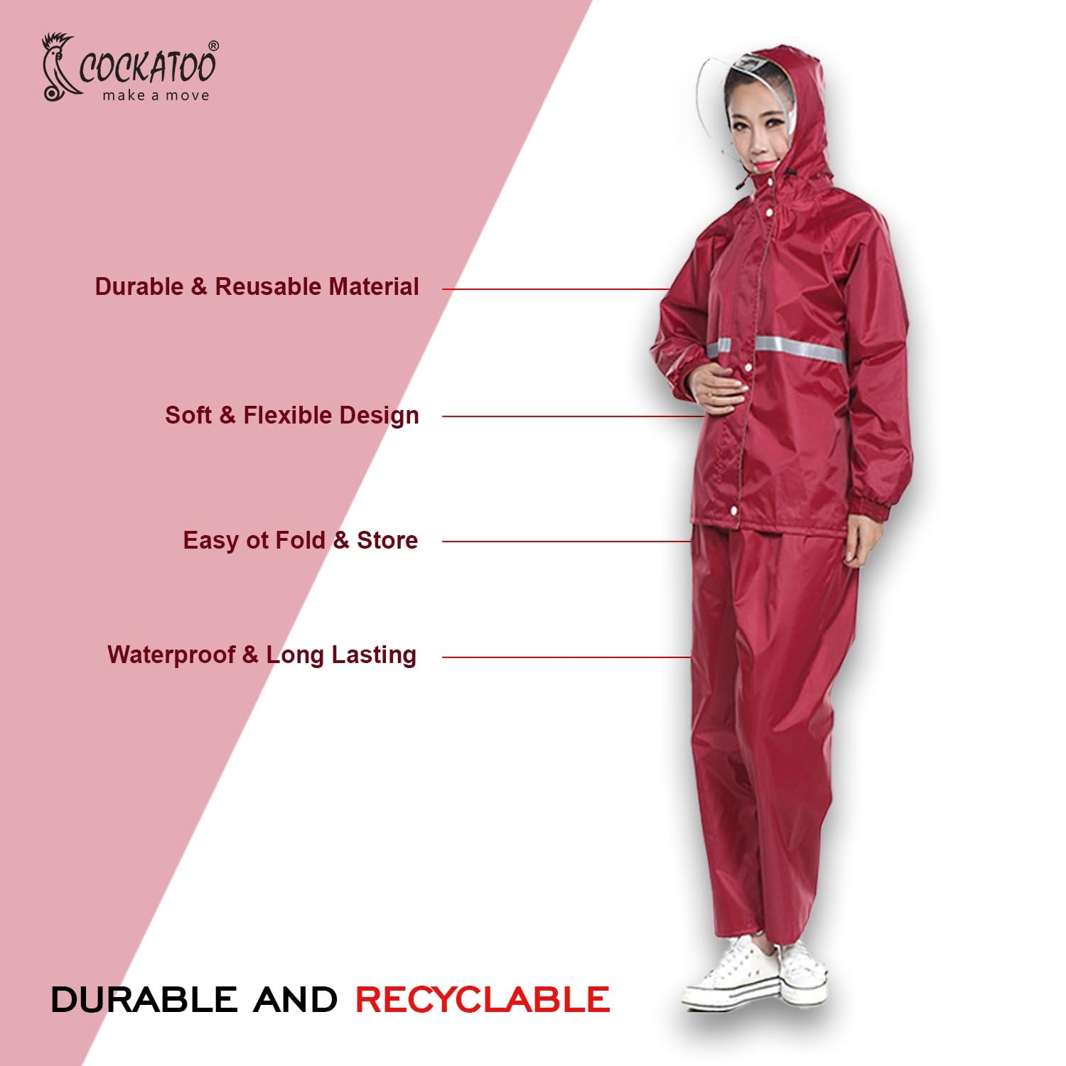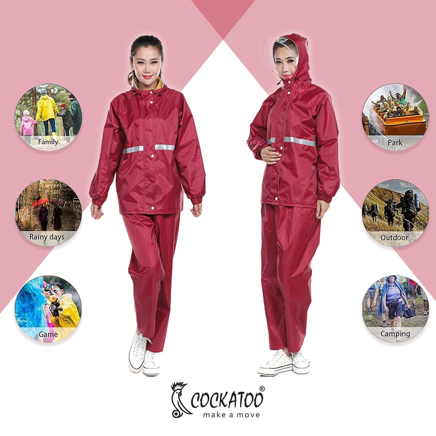 Cockatoo RNCT-01 Rain Coat with Pant | Oxford Material Rain Coat for Men & Women| Red