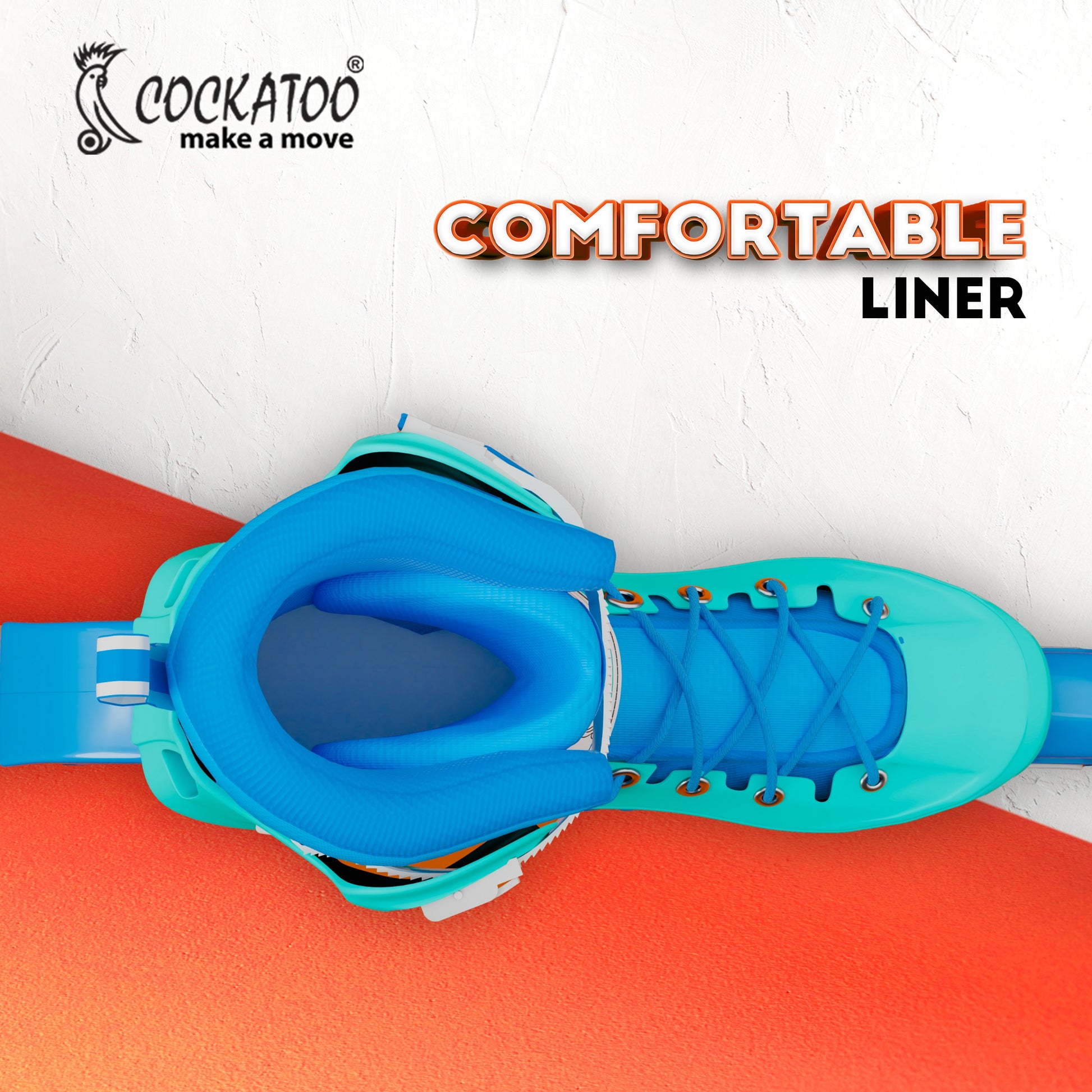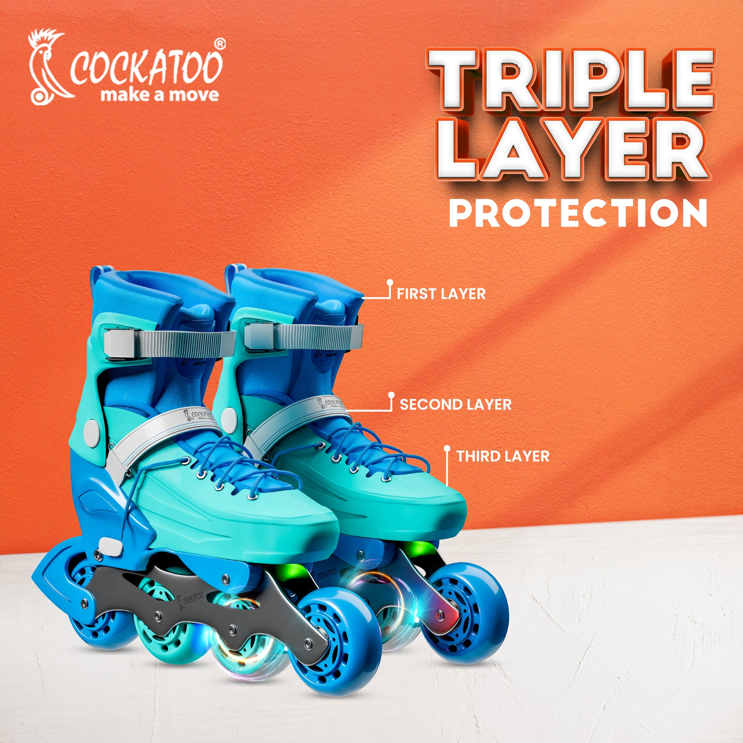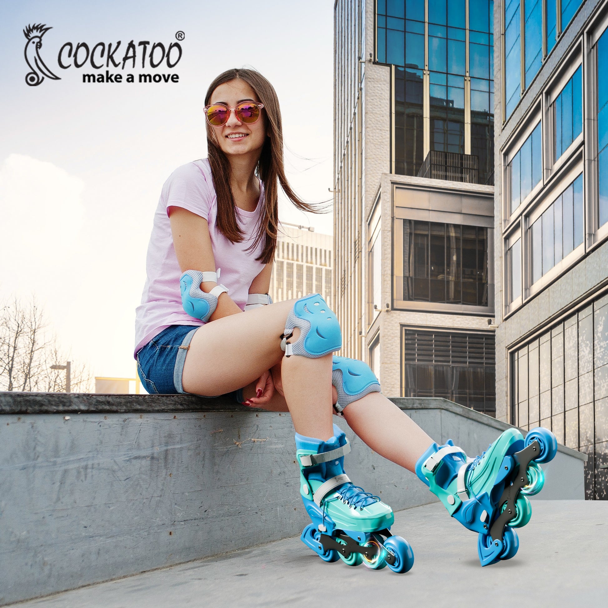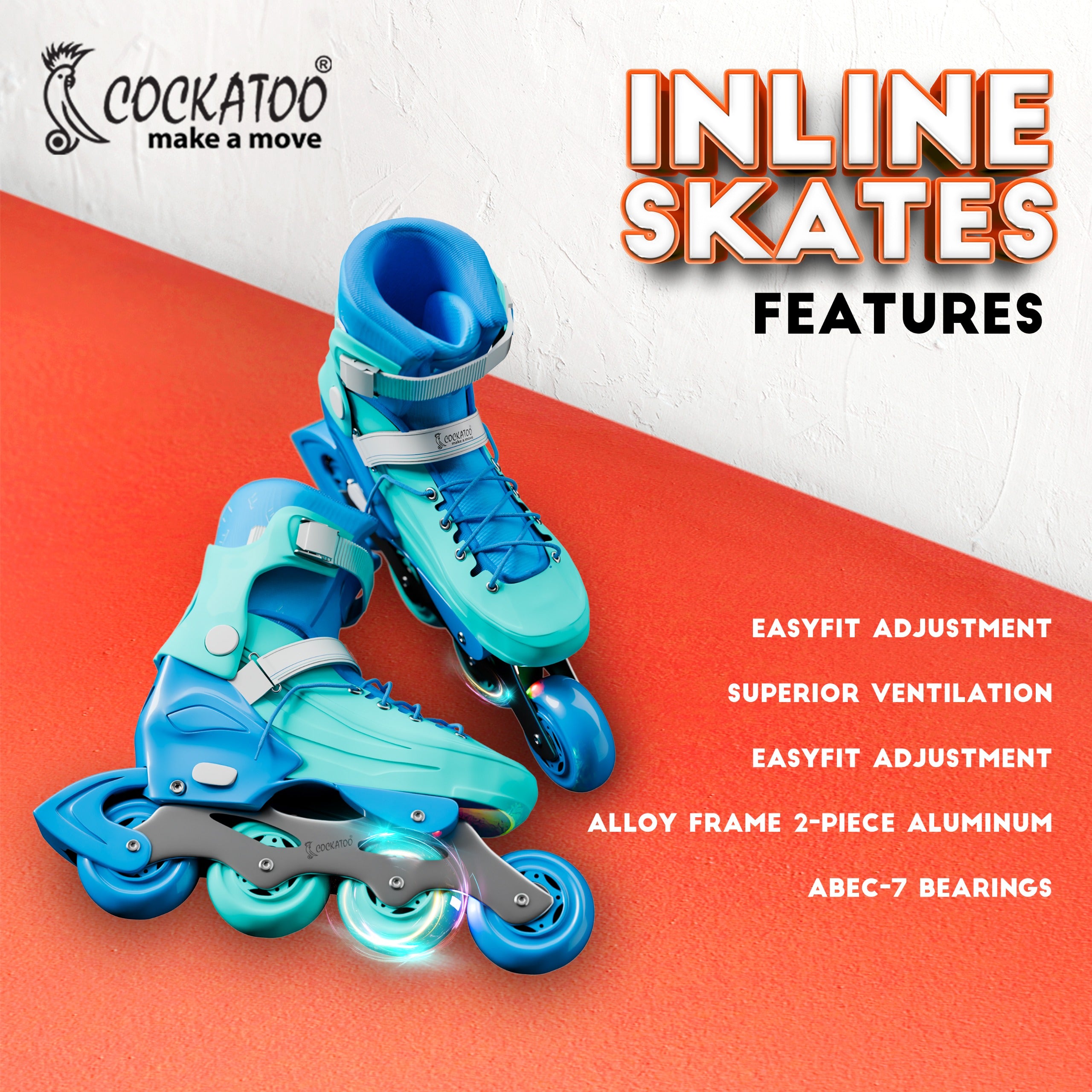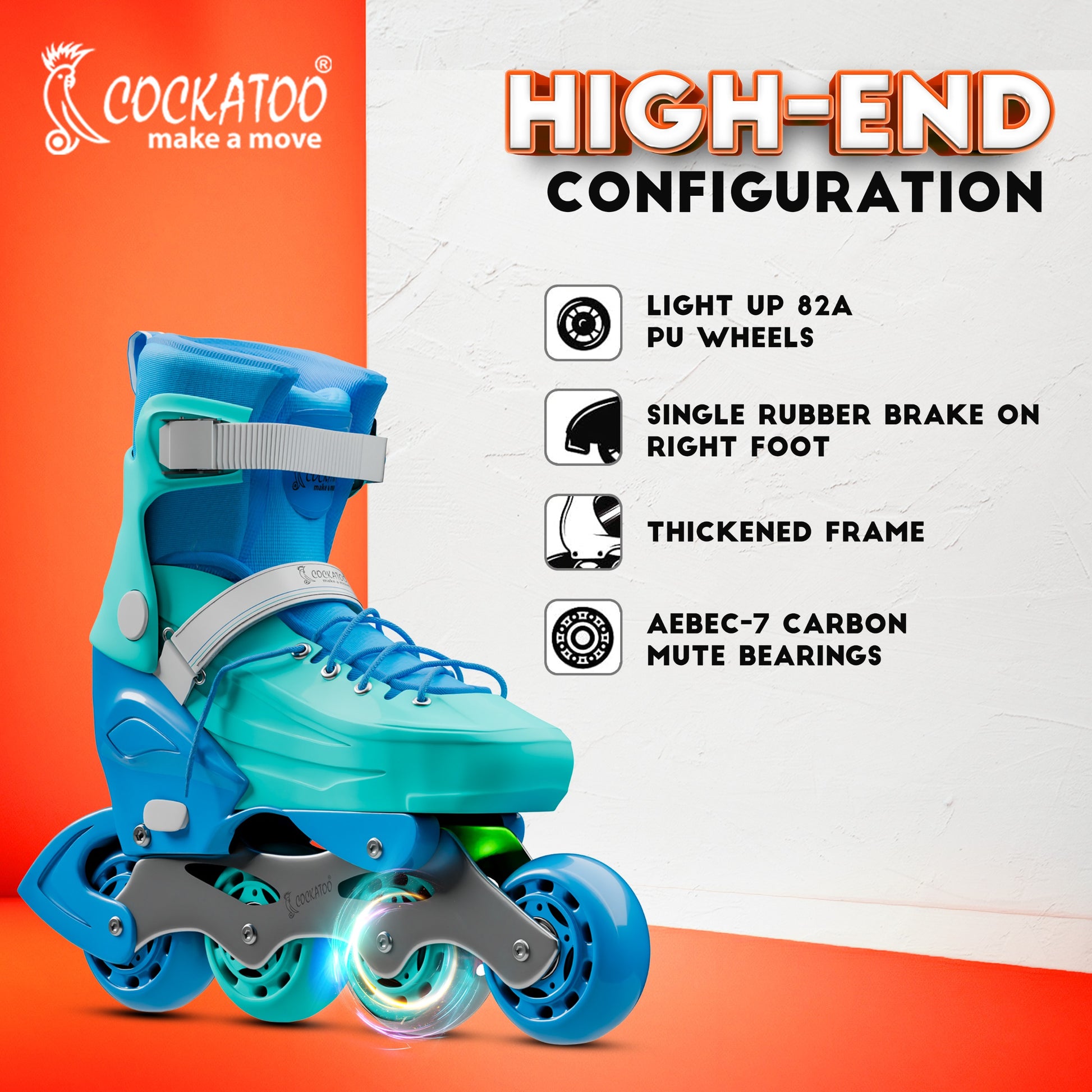 Cockatoo Shadow Line Adjustable LED Wheel Inline Skates ABEC-7 Bearing Skating Shoes for 6-12 Years With Lightning Wheel, 4 Wheels Inline Skates for Kids-Blue, Size-S (EU 31-34), Size-M (EU 35-38), Size-L (EU 39-42)