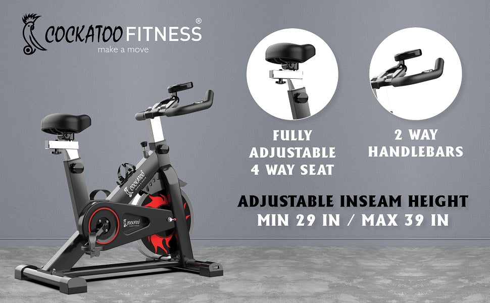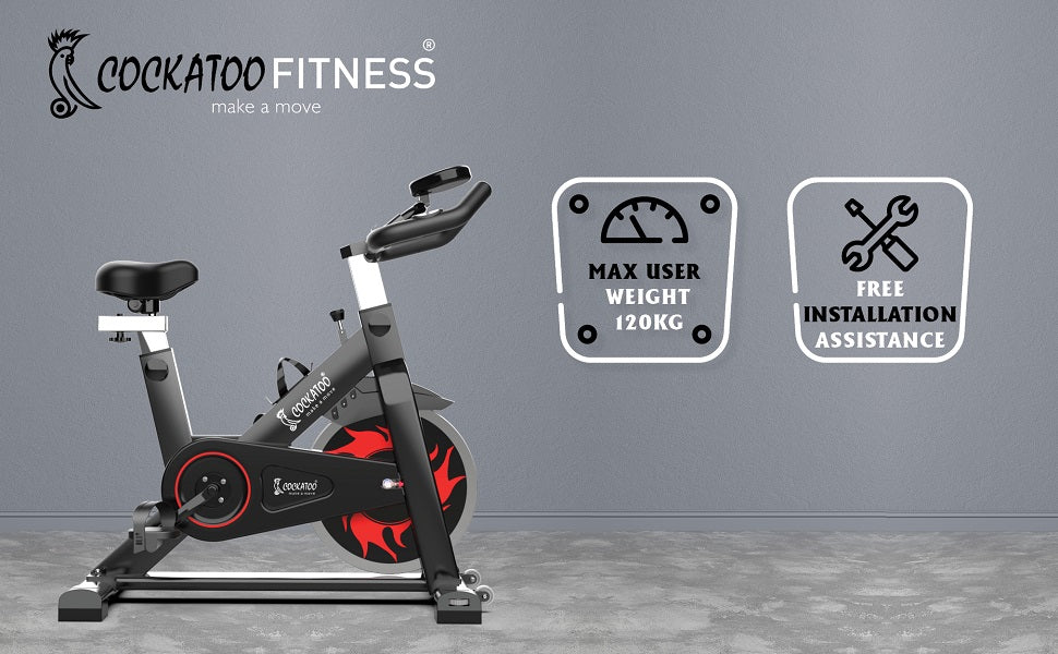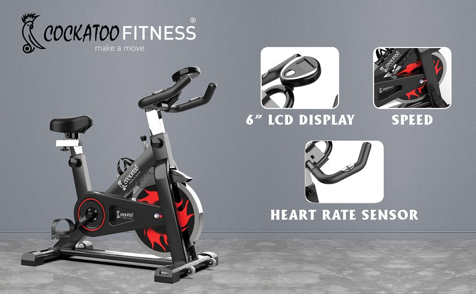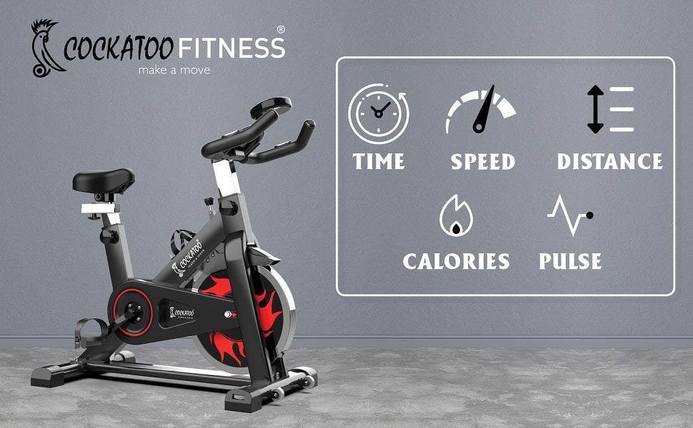 Cockatoo CSB730 Spin Bike has a display which tracks calories, time, speed, and distance. It has a Flywheel size of 11 kg.
