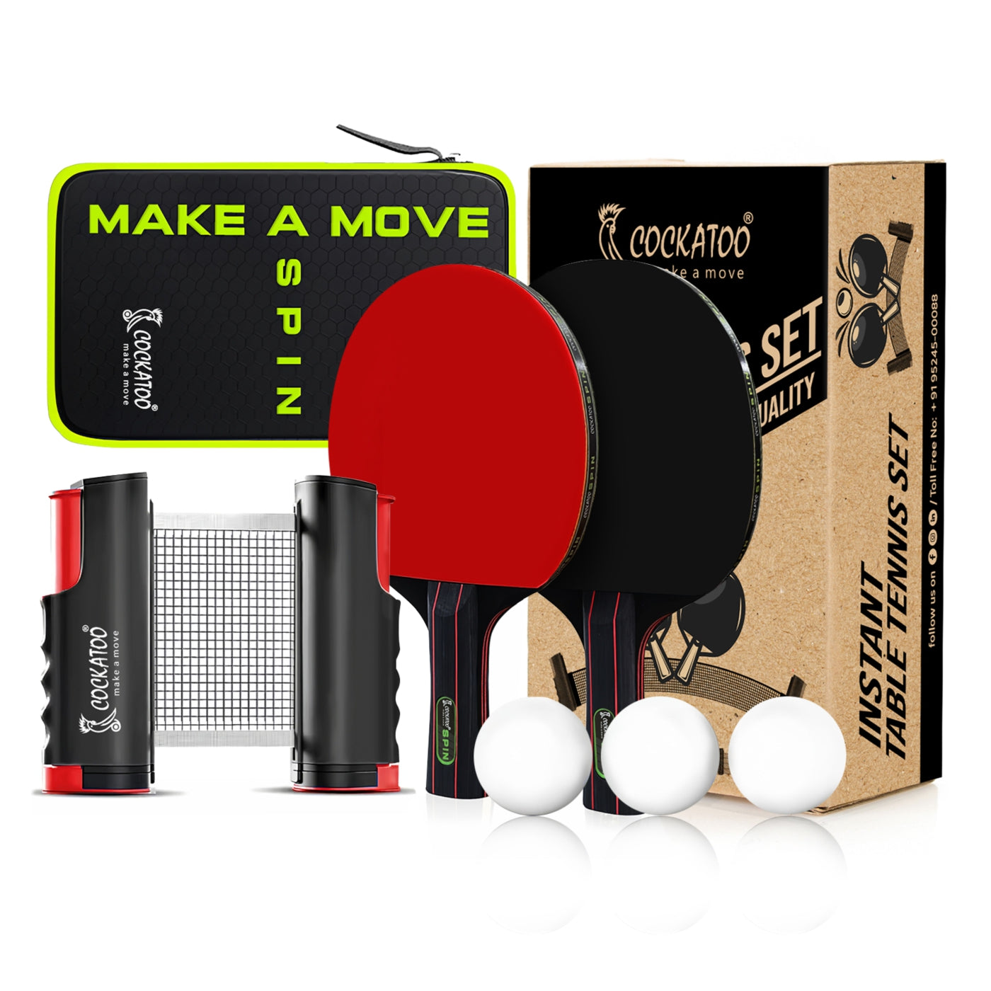 - Complete TT Set with Adjustable Net – Includes 2 high-quality 3-star rackets black and red, 3 balls, and an adjustable net.