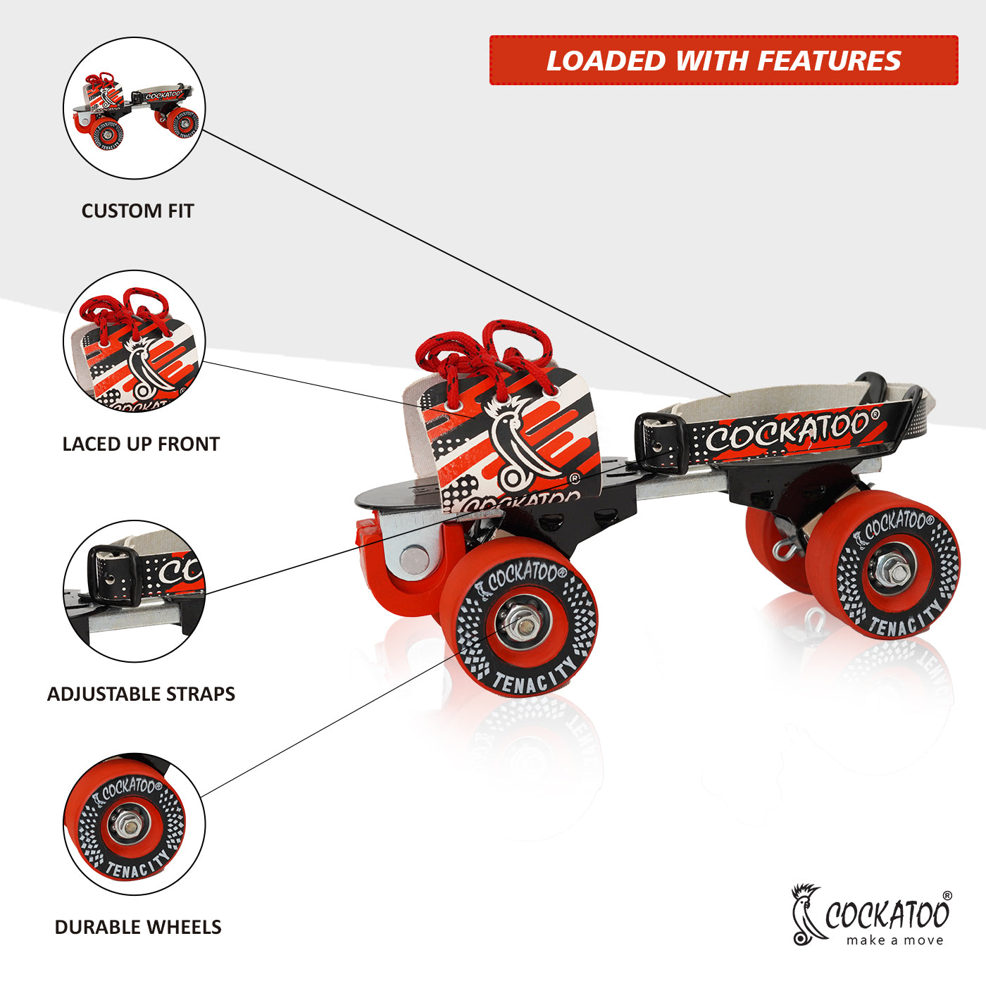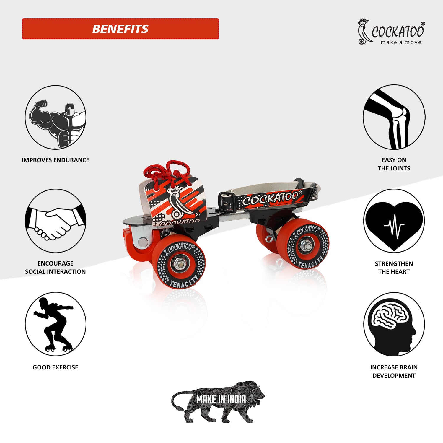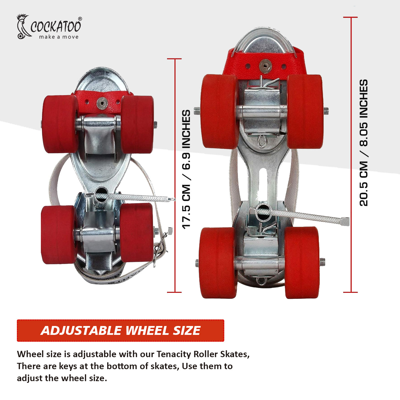 Built from heavy-gauge zinc-plated or powder-coated steel, Cockatoo Tenacity Roller Skates offer lasting durability and a breathable design. With adjustable length for a personalized fit and 55mm rubber wheels for smooth gliding, they ensure comfort and control. Synthetic straps provide a secure fit, while the stylish packaging makes them a perfect gift or personal upgrade.