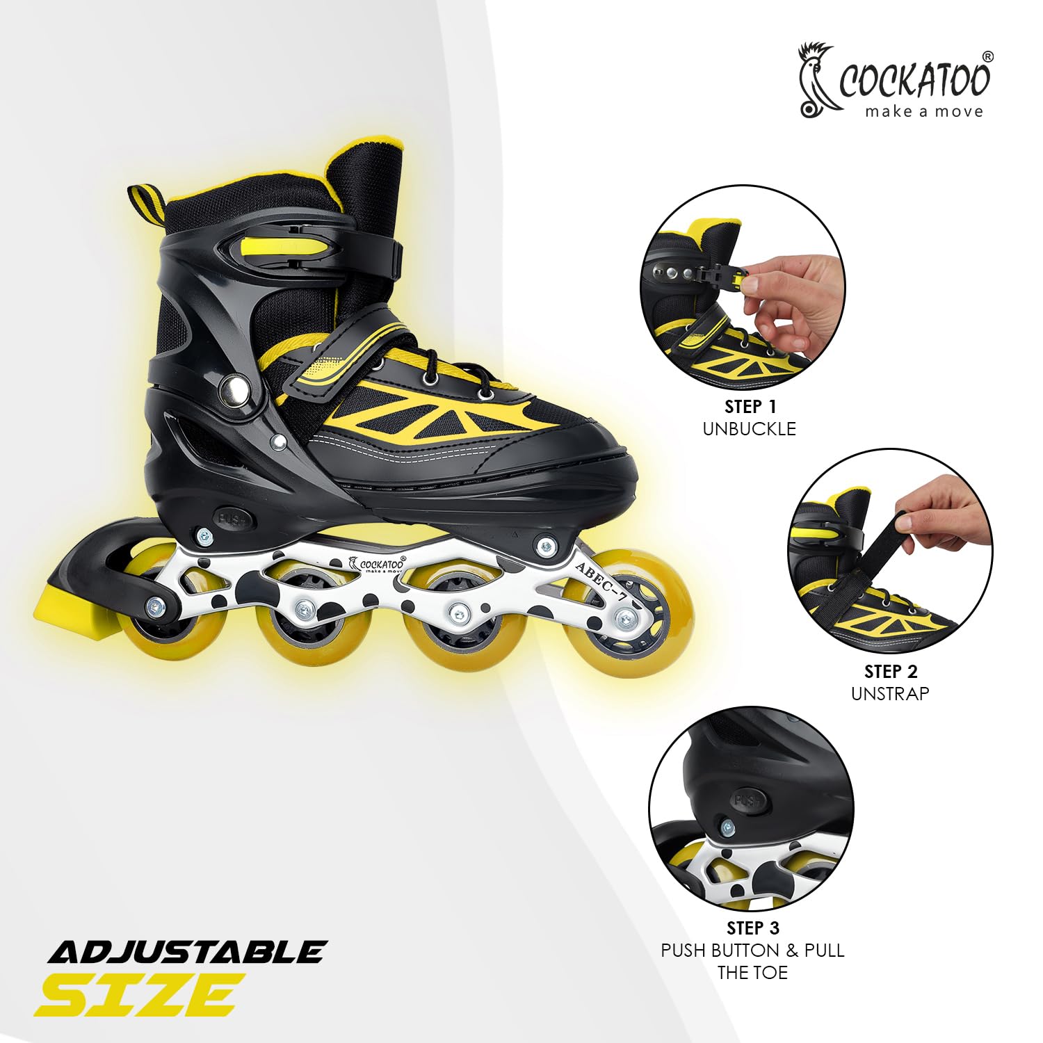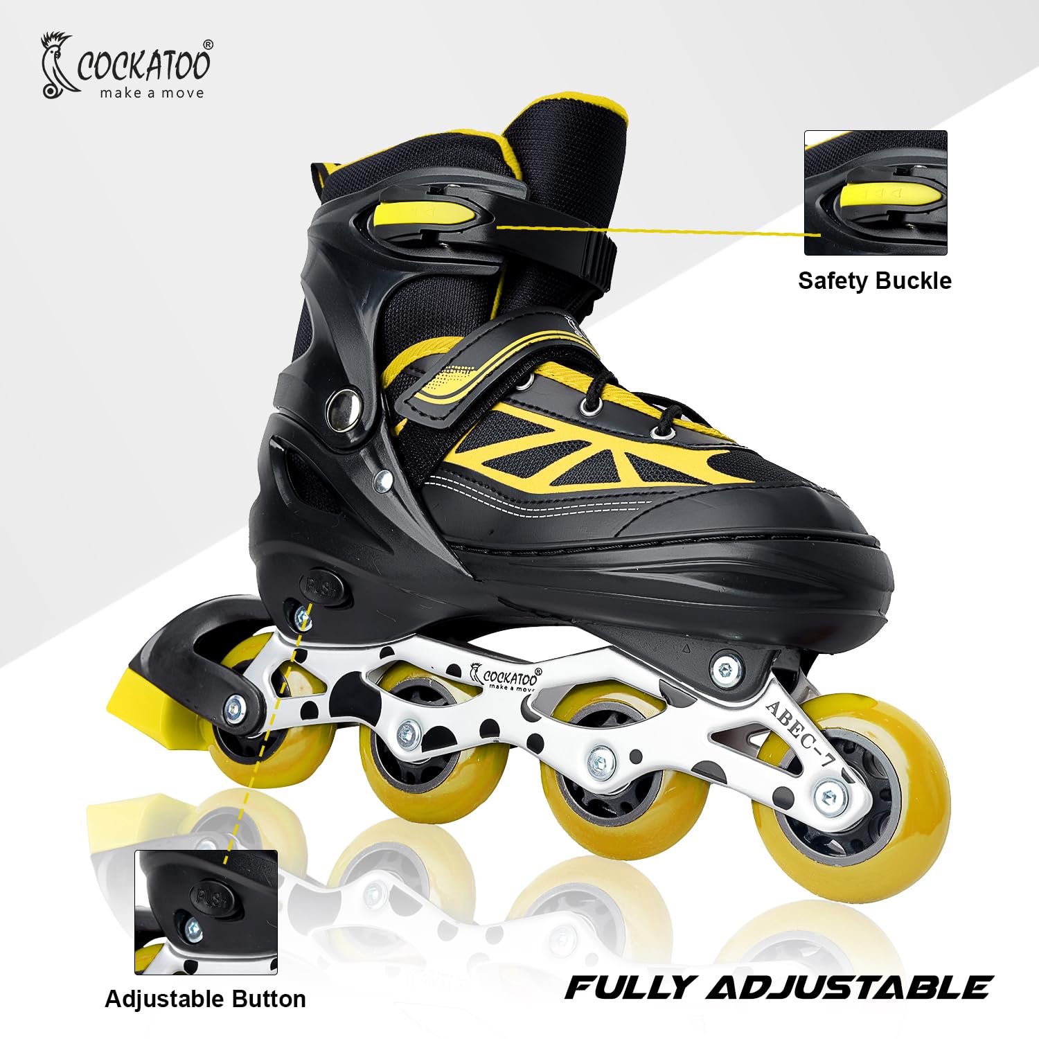 • Adjustable Sizes for Growing Feet: Inline skates are easily adjustable with a button, offering 4 sizes (S/M/L/XL) to accommodate growing kids and ensure years of fun.