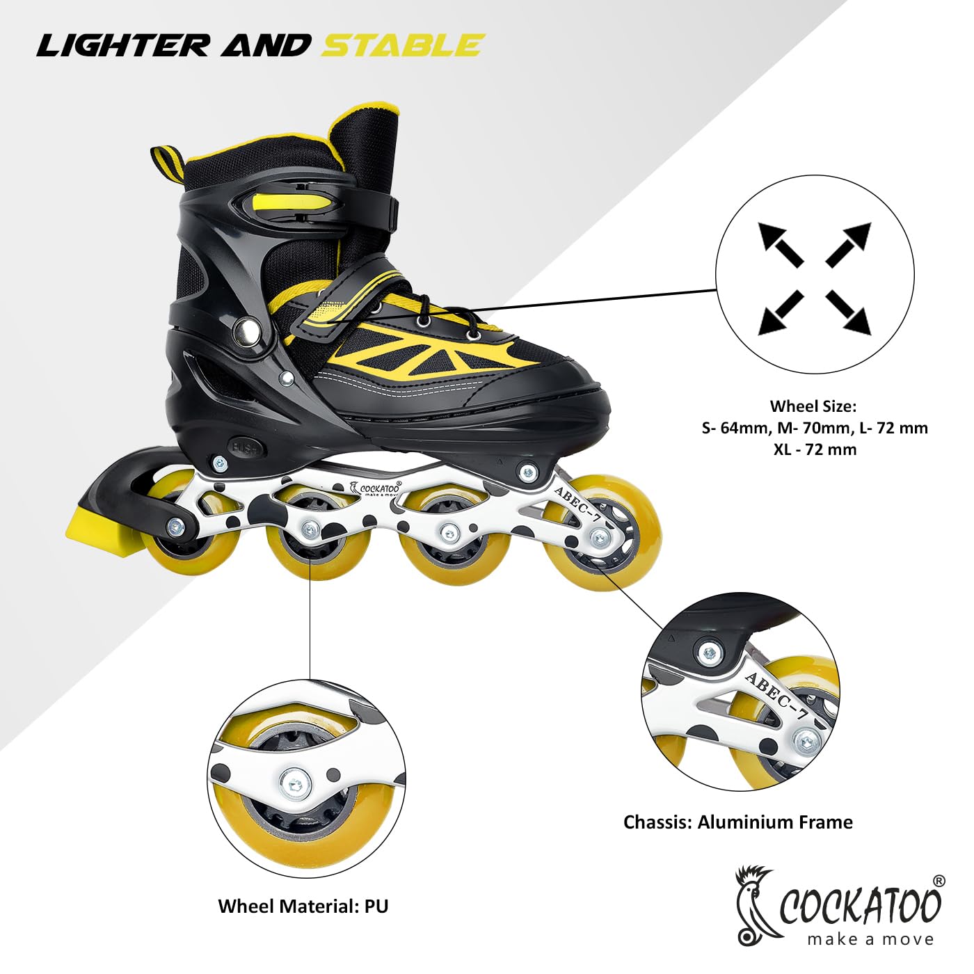 Cockatoo Urban Flow Adjustable 4-Wheel Inline Skates, Quad Roller Skates, 2-in-1 Design, Aluminum Chassis, 72 mm PU, L