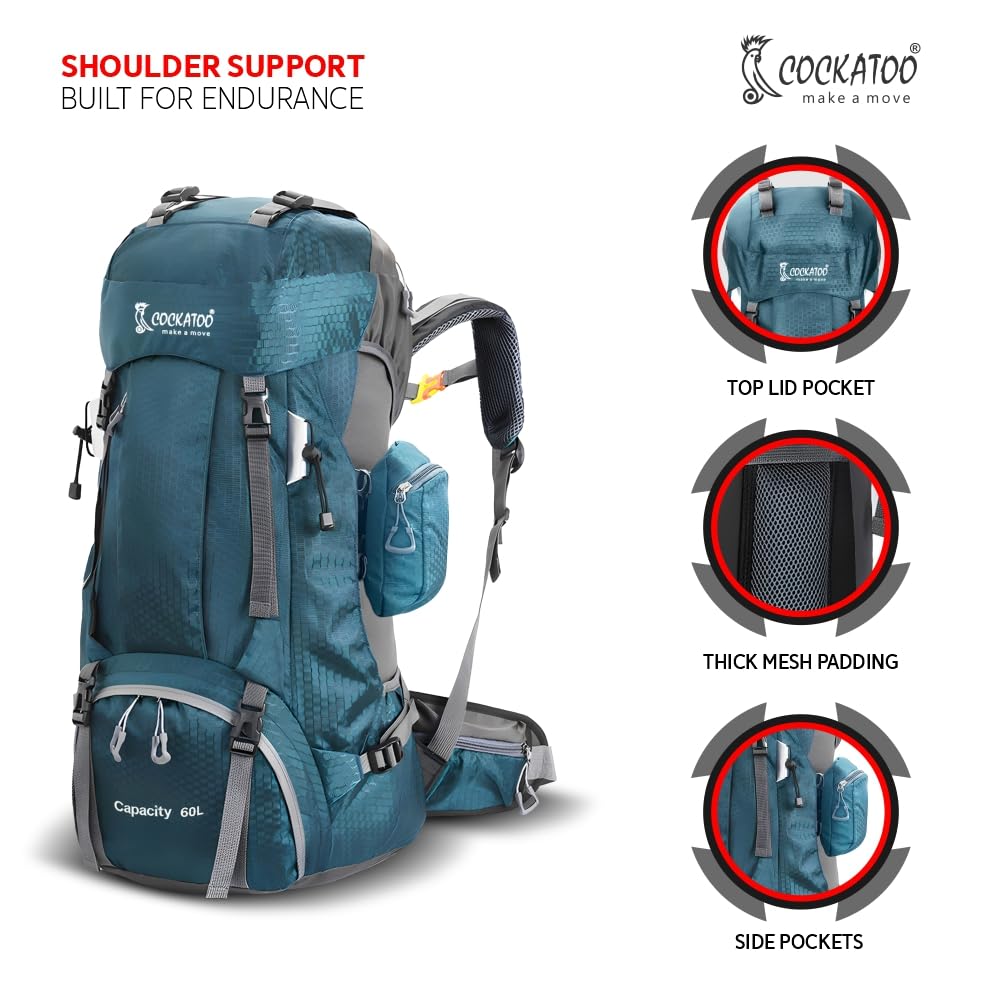 - 60L trekking backpack includes a hydration compartment that fits a 3L bladder, with tube access near the top grab handle — perfect for long treks and outdoor travel.